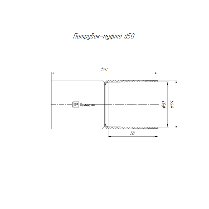 PR13.0355 | Патрубок-муфта d50мм безгалоген. (HF) атмосф. сер. Промрукав