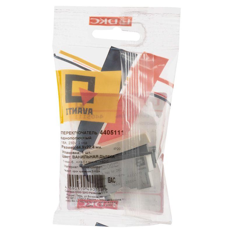 4405111 | Переключатель модульный 1-кл. 1мод. Avanti "Ванильная дымка" 16А IP20 беж. DKC