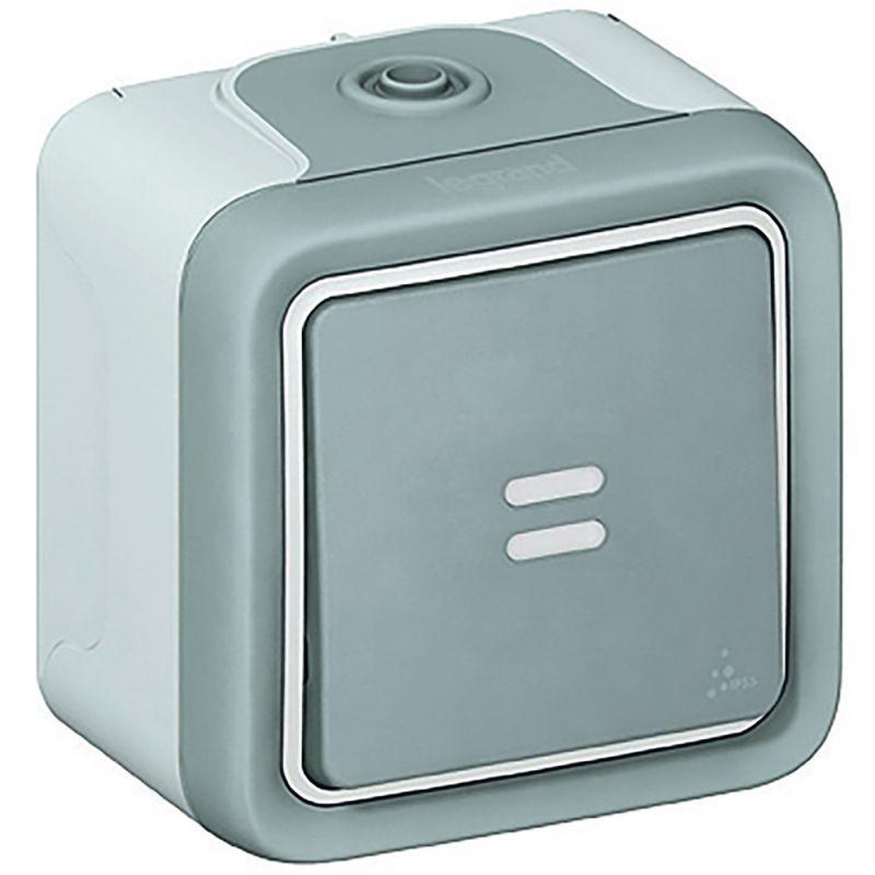 Переключатель проходной 1-кл. 1п ОП Plexo 10А IP55 250В 10AX с индикацией сер. Leg 069712