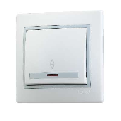 701-0215-114 | Переключатель проходной 1-кл. СП Mira 10А с подсветкой с сер. вставкой бел. LEZARD