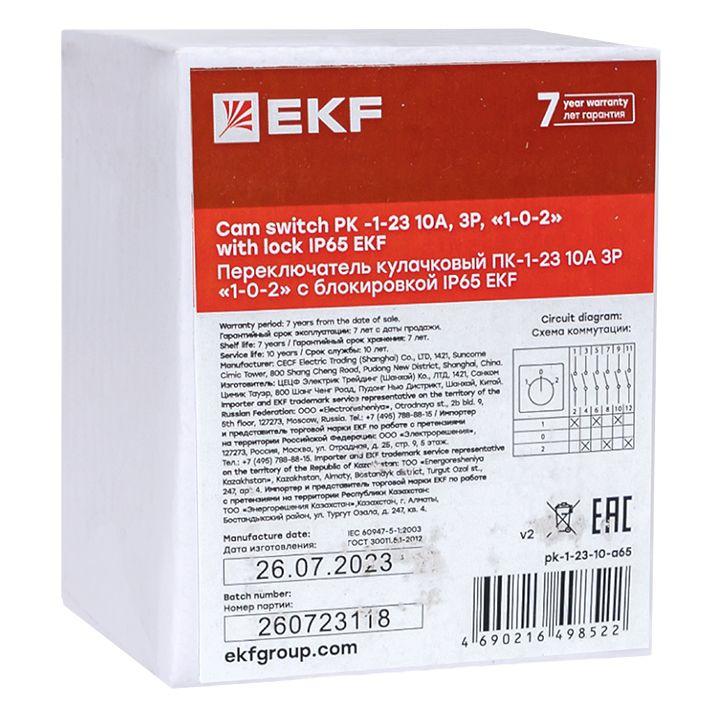 pk-1-23-10-a65 | Переключатель кулачковый ПК-1-23 10А 3п "1-0-2" с блокировкой IP65 PROxima EKF