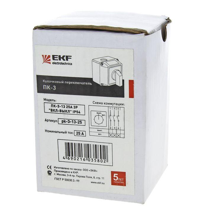 Переключатель кулачковый ПК-3-13 3П 63А "ВКЛ-ВЫКЛ" IP54 EKF pk-3-13-63