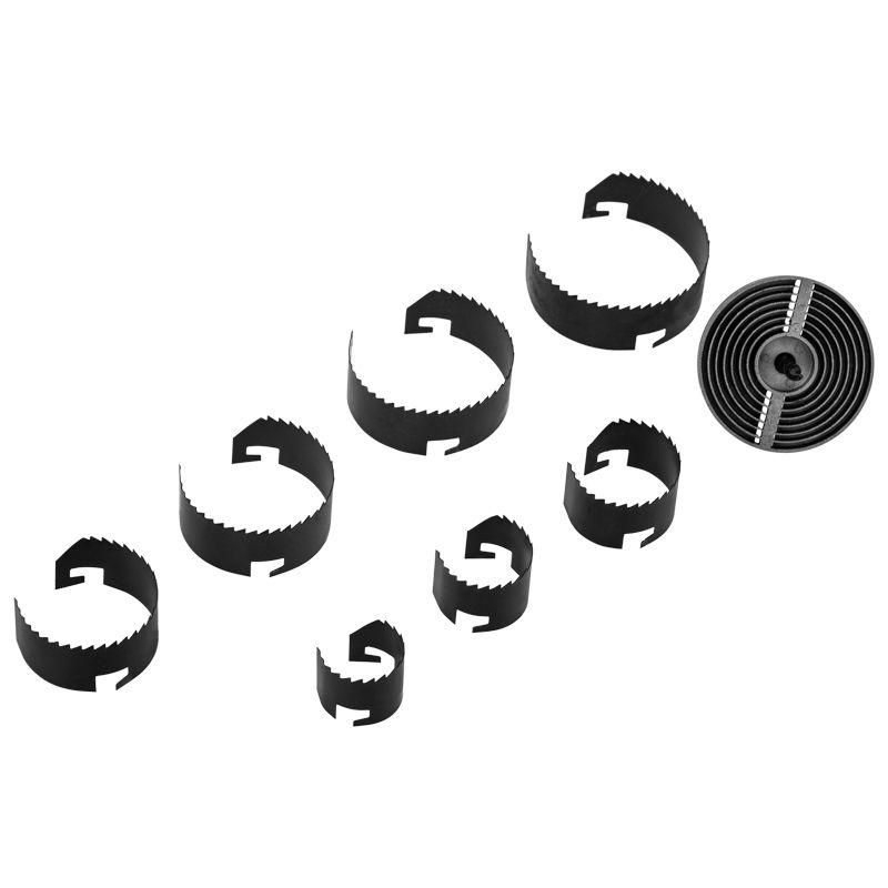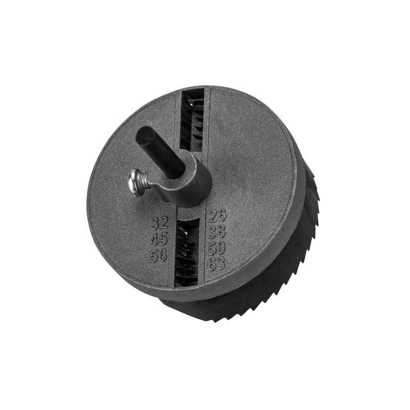 Комплектация: кольцевые пилы диаметром 26, 32, 38, 45, 50, 56, 63 мм, держатель, центрирующее сверло.