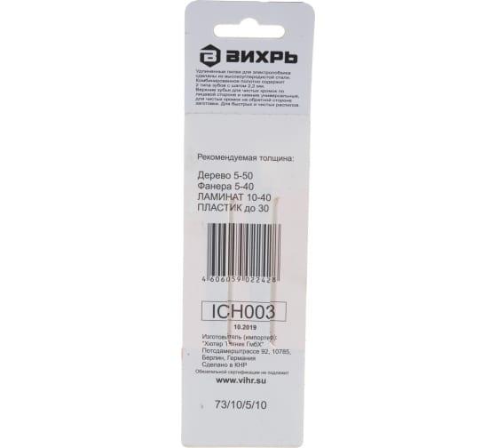 Пилки для лобзика Т308В по дереву ламинату чистый рез 116х90мм (уп.2шт) Вихрь 73/10/5/10