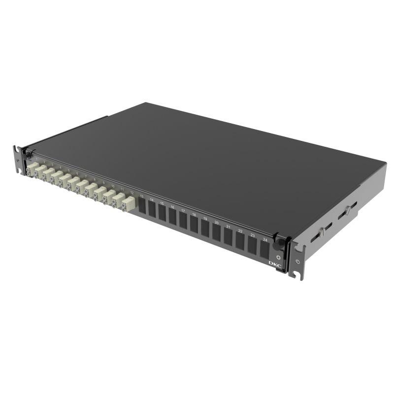Полка оптическая выдвижная 1U с адатерами 12 х duplex LC ОМ2 в комплекте с лицевой панелью пигтейлами сплайс-кассет(ой/ами) и гильзами КДЗС DKC RNFP50DLCU12