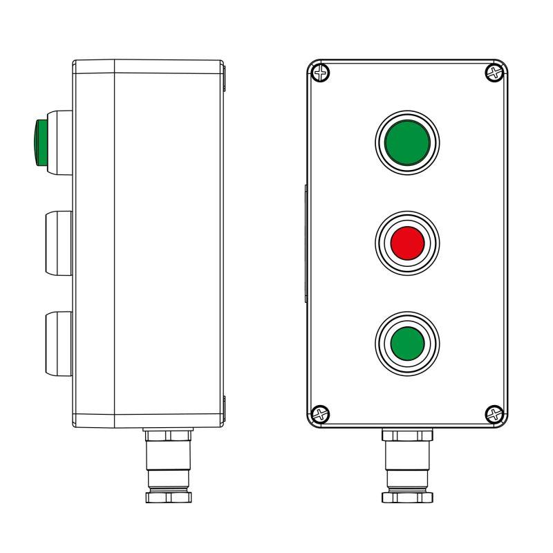 2231.041.22.120P | Пост управления взрывозащищенный из полиэстера CPE-P-04-(1xLG(250)-1xP1R(11)-1xP1G(11))-1xKH2MHK(C)1Ex d e IIC Т5 Gb / Ex tb IIICT95град.C Db IP66/КЗ DKC