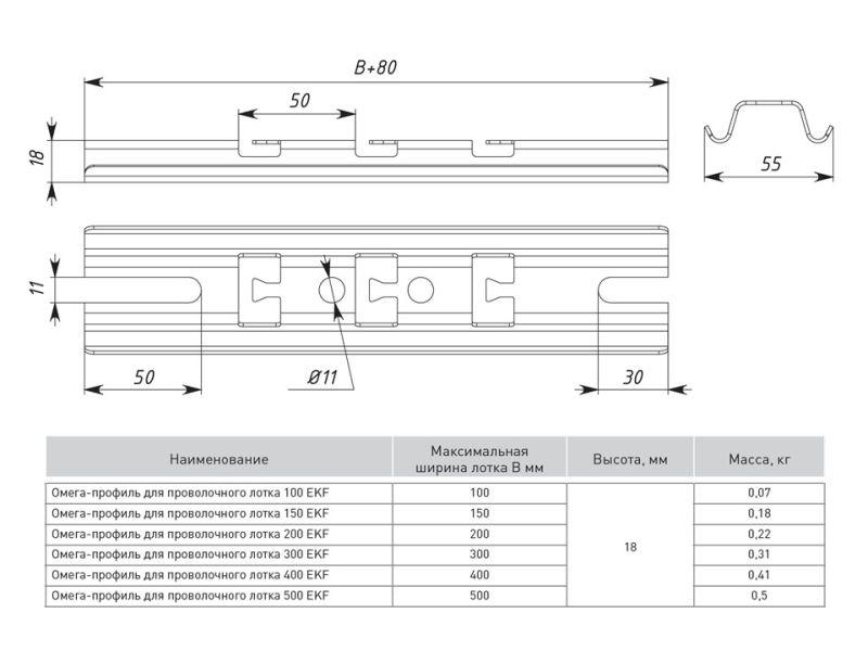 ompp300-INOX | Профиль Омега для проволочного лотка осн.300 нерж. сталь INOX EKF