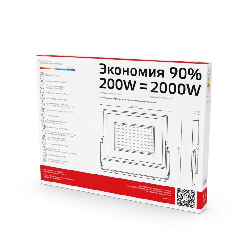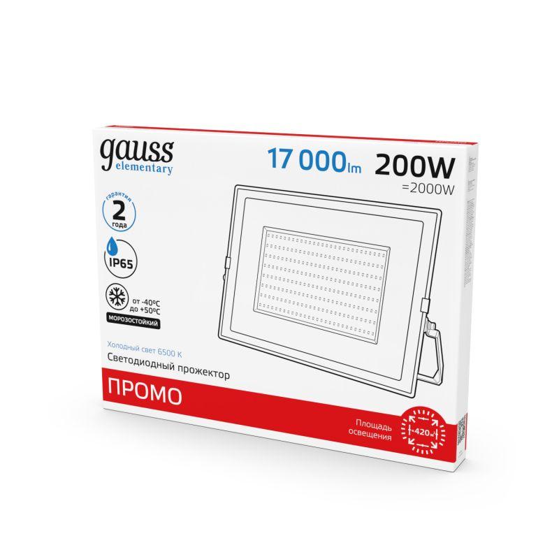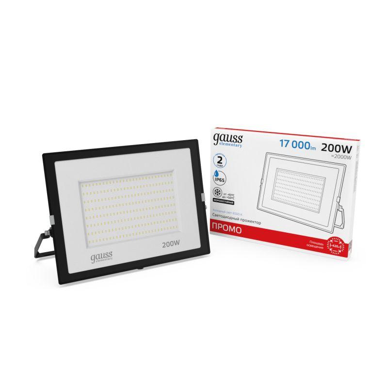 Прожектор светодиодный Elementary 200Вт IP65 6500К 17000лм PROMO G3 черн. GAUSS 613100200P