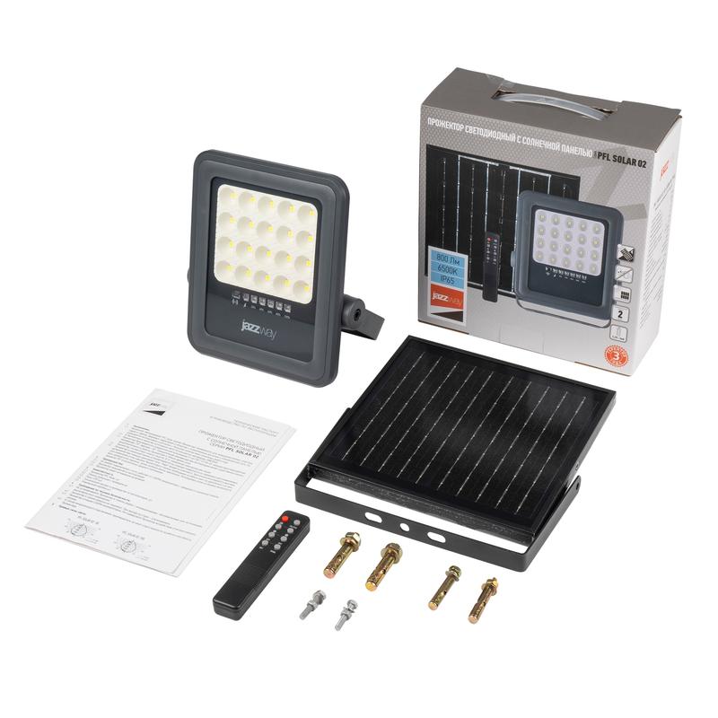 5058460 | Прожектор светодиодный PFL SOLAR 02 50 6500К GR IP65 ДО с солнечн. панелью и пультом Pro+ JazzWay
