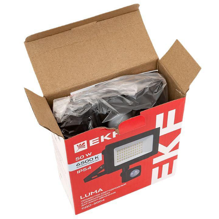 Прожектор светодиодный СДО-3004 50Вт 6500К IP54 с инфракрасным датчиком движения EKF FLL-3004-50D-6500