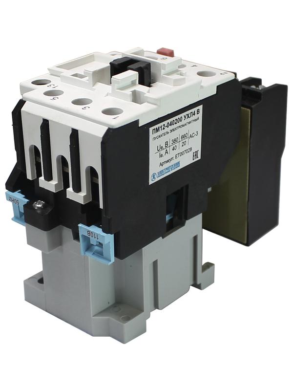 ET007028 | Пускатель электромагнитный ПМ12-040200 УХЛ4 В 40А 110В/50Гц 1НО IP00 нереверсивный с реле РТТ-121 28.0-40.0А Электротехник