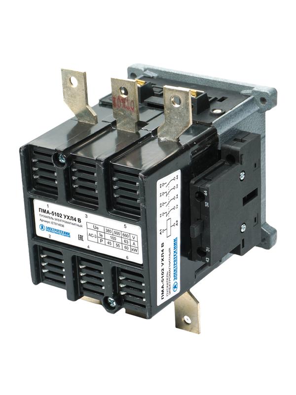 ET014636 | Пускатель электромагнитный ПМА-5102 УХЛ4 В 100А 110В 2НО+2НЗ IP00 нереверсивный без реле Электротехник