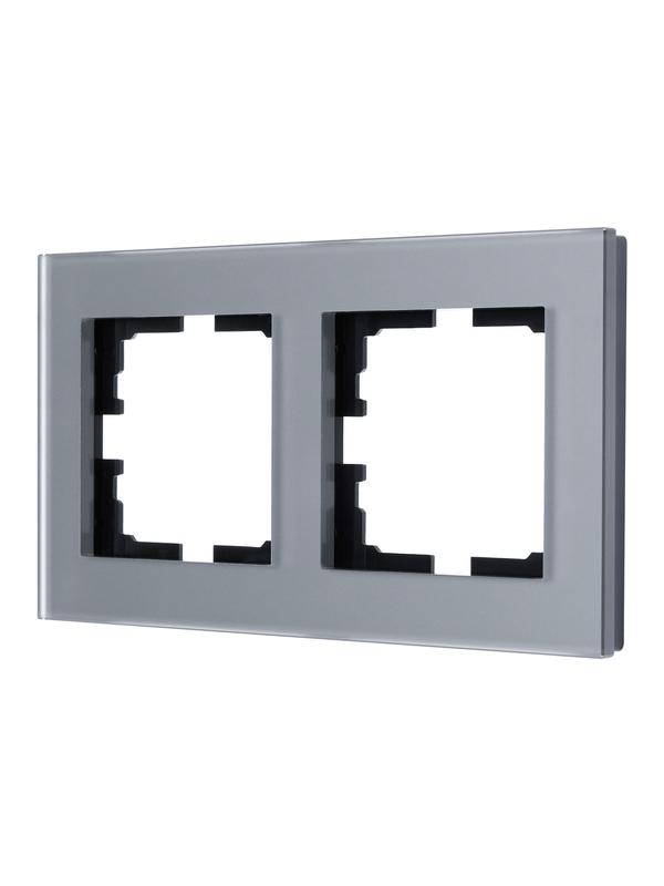 742-M6980-147 | Рамка 2-местн. гориз. VESNA стекло асфальт матов. LEZARD
