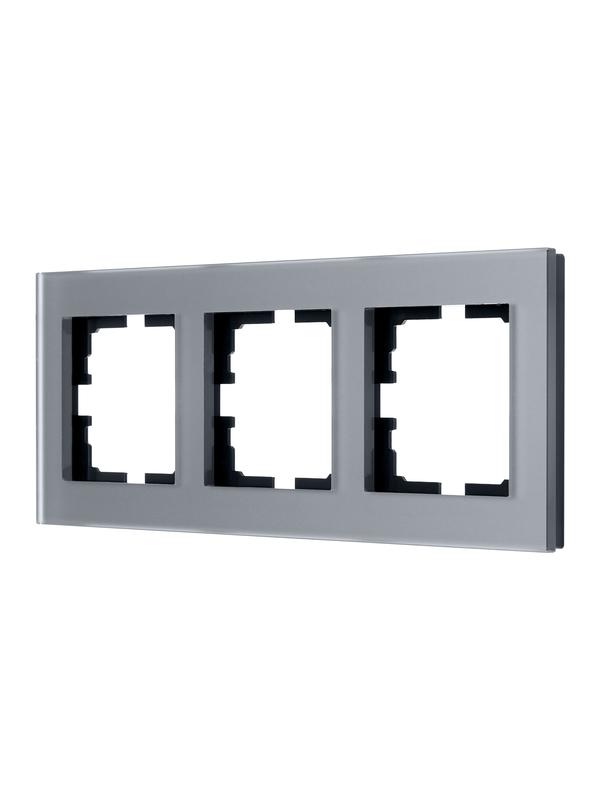 742-M6980-148 | Рамка 3-местн. гориз. VESNA стекло асфальт матов. LEZARD