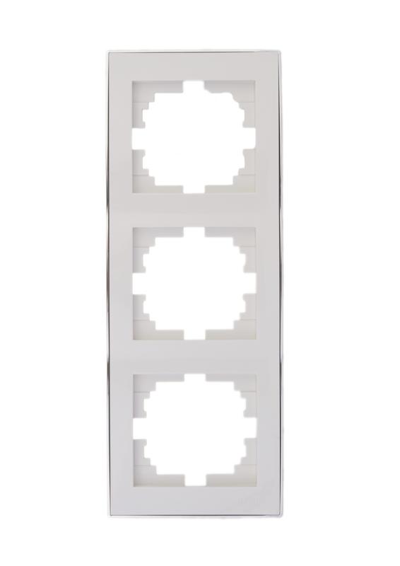703-0225-153 | Рамка 3-м Rain вертикал. с хром. боковой вставкой бел. LEZARD