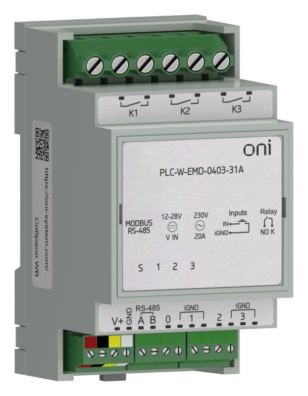 Расширение коммутирующее 4 DI 3 DO макс. п. ток 31А ПЛК W. ONI PLC-W-EMD-0403-31A