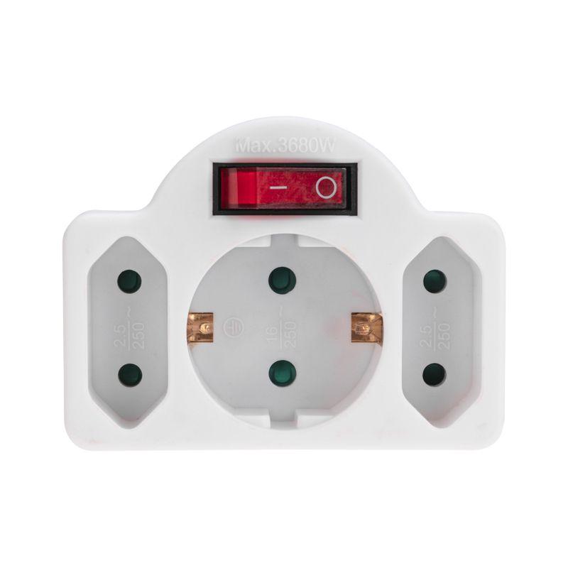 11-1086 | Разветвитель 3-м 16А + 2х2.5А с выключателем с заземл. защ. шторки бел. Rexant