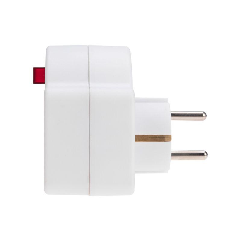 Тройник может быть использован в помещениях, где находятся маленькие дети, так как шторки обеспечивают надежную защиту от поражения электрическим током, блокируя доступ к контактам розетки сторонних мелких предметов: спиц, карандашей, бусин и др.