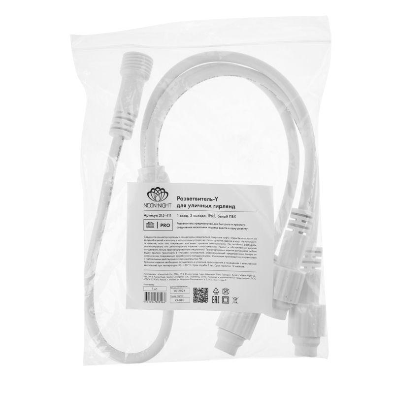 315-411 | Разветвитель-Y для уличных гирлянд Professional (1 вход 3 выхода) бел. ПВХ Neon-Night