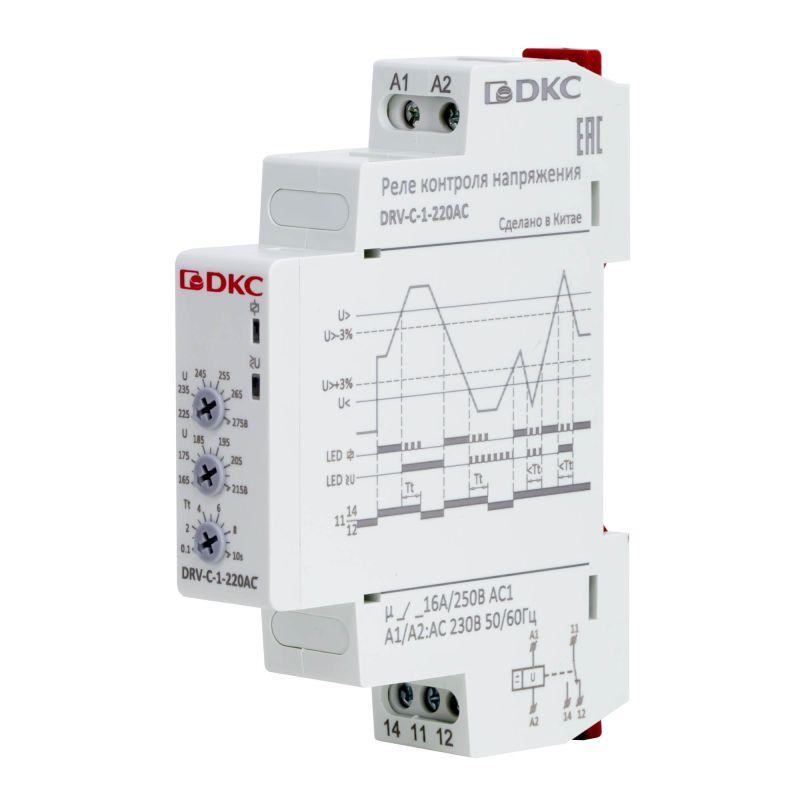 DRV-C-1-220AC | Реле контроля напряжения однофазное тип DRV конфигурация контакта 1CO 220В AC DKC
