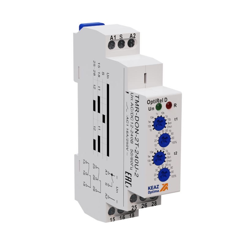 332029 | Реле времени OptiRel D TMR-DON-2T-240U-2 две задержки включения 16А 2СО 12-230АС/DC КЭАЗ