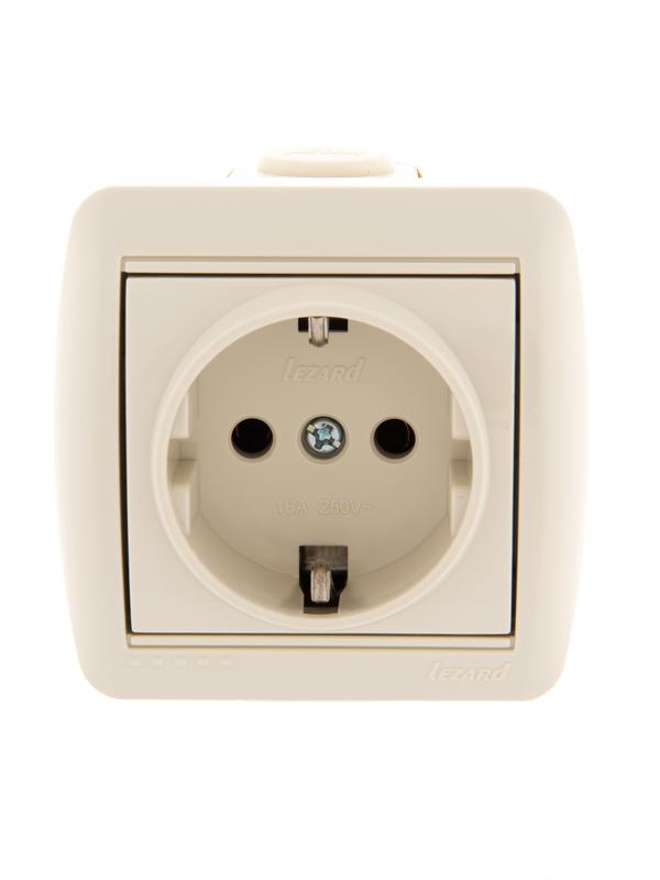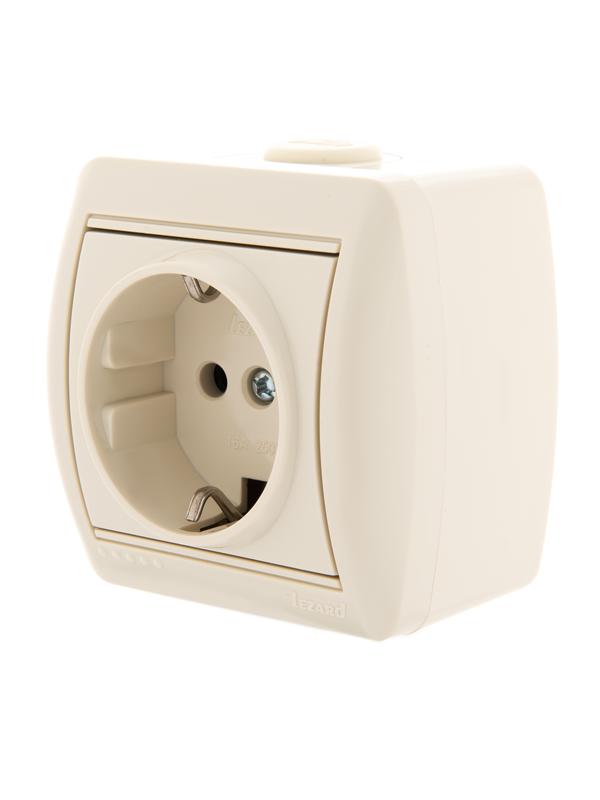 710-0300-122 | Розетка 1-м ОП Nata 16А IP20 с заземл. керамика крем. LEZARD