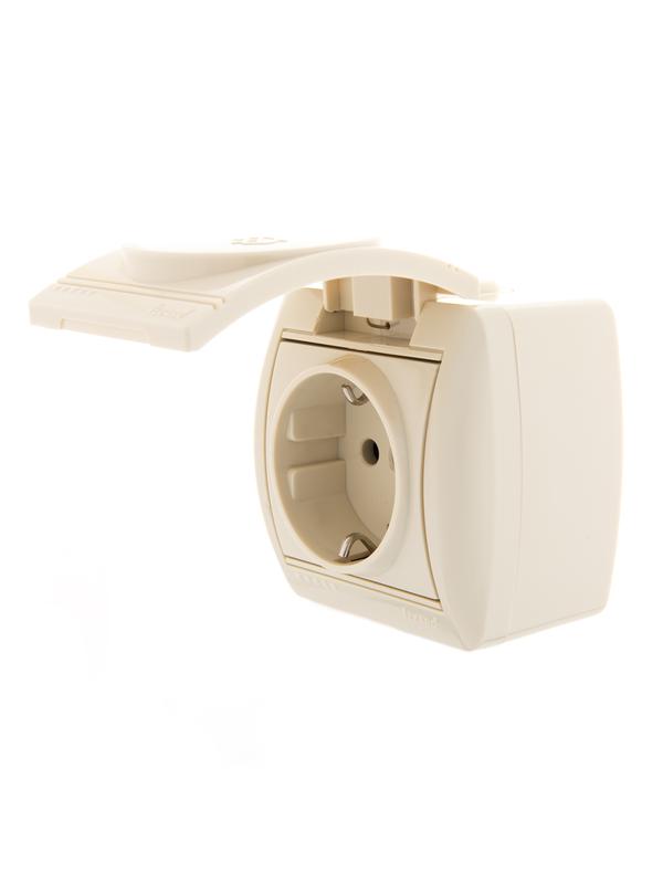 710-0300-123 | Розетка 1-м ОП Nata 16А IP20 с заземл. с защ. крышкой керамика крем. LEZARD