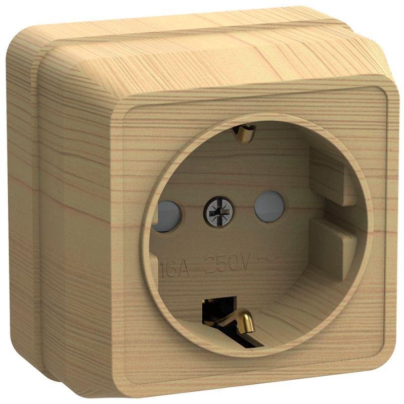 ERO14-K03-16-DC | Розетка 1-м ОП Октава РСш20-3-ОС 16А IP20 с заземл. защ. шторки сосна IEK
