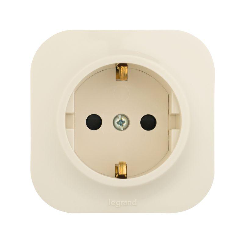 782250 | Розетка 1-м ОП Quteo 16А IP20 250В 2P+E с заземл. защ. шторки сл. кость Leg