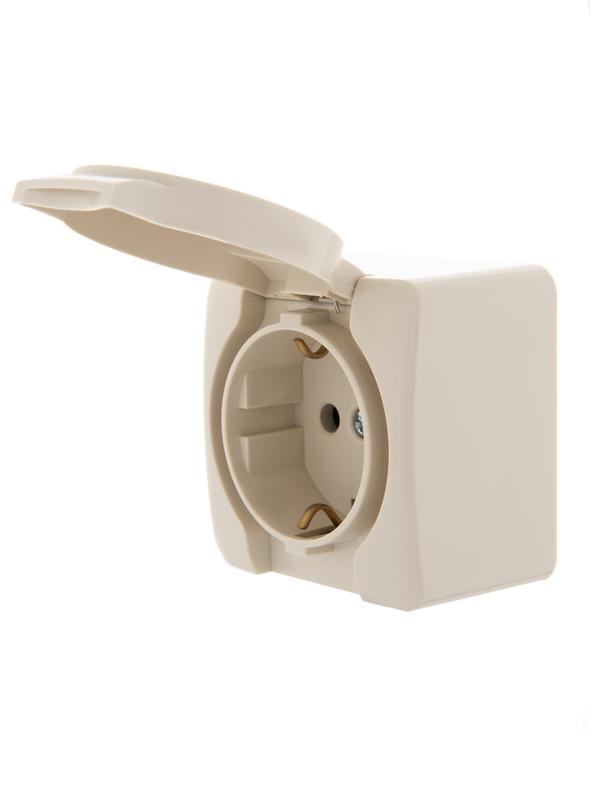 Розетка 1-м ОП Viola с заземл. с крышкой крем. LEZARD 751-0300-123