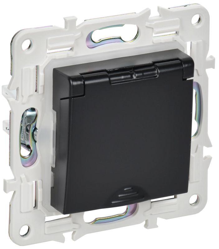 SK-R16-16-44-K02 | Розетка 1-м SKANDY 16А IP44 с заземл. защ. штроки с крышкой SK-R11Bl черн. IEK