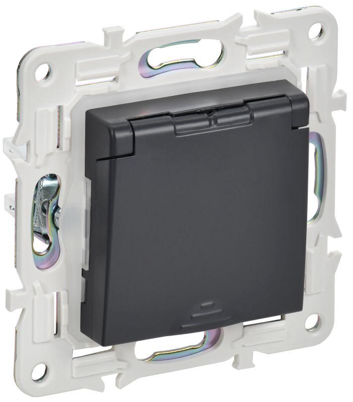SK-R16-16-44-K48 | Розетка 1-м SKANDY 16А IP44 с заземл. защ. штроки с крышкой SK-R11T титан IEK