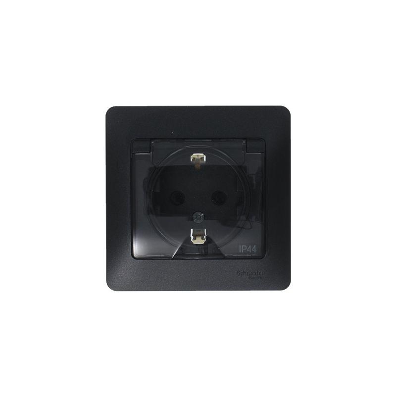 Розетка 1-м СП 1мод. Glossa 16А IP44 с заземл. защ. шторки с крышкой в сборе антрацит SE GSL000748
