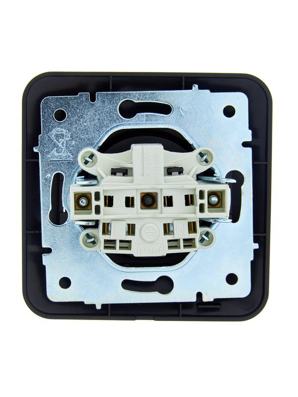 7081-4242-121B | Розетка 1-м СП ASTI 16А IP20 без заземл. термопласт в сборе черн. бархат. LEZARD