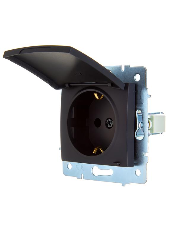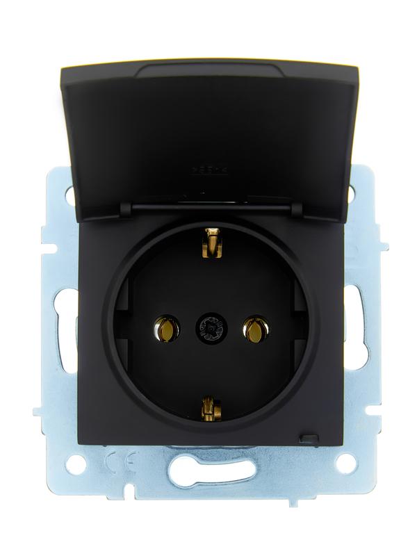 7081-4288-123B | Розетка 1-м СП ASTI 16А IP20 с заземл. с крышкой термопласт механизм черн. бархат. LEZARD 7081-4288-123В