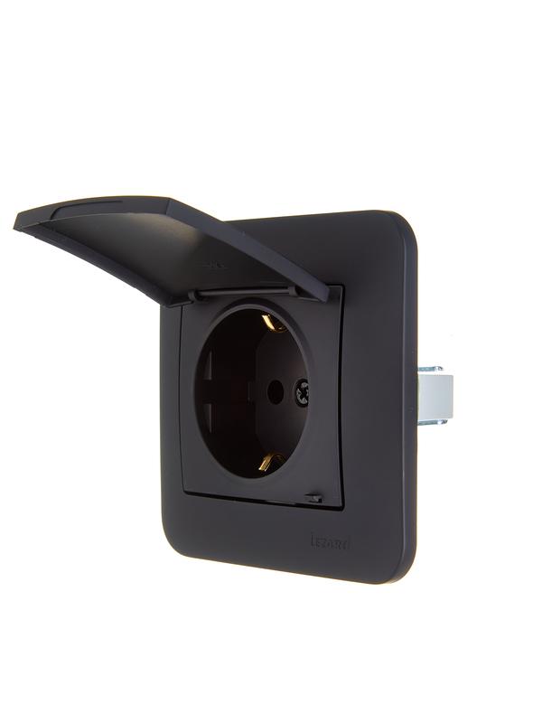7081-4242-123B | Розетка 1-м СП ASTI 16А IP20 с заземл. с крышкой термопласт в сборе черн. бархат. LEZARD 7081-4242-123В