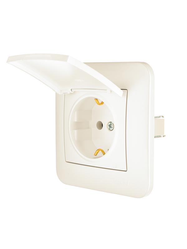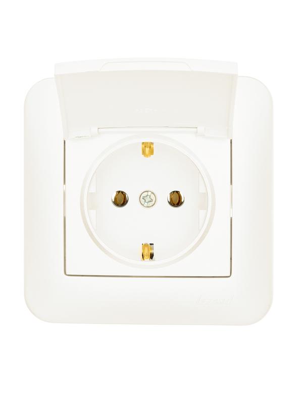 7081-3030-123B | Розетка 1-м СП ASTI 16А IP20 с заземл. с крышкой термопласт в сборе жемчуж./бел. перламутр. LEZARD 7081-3030-123В