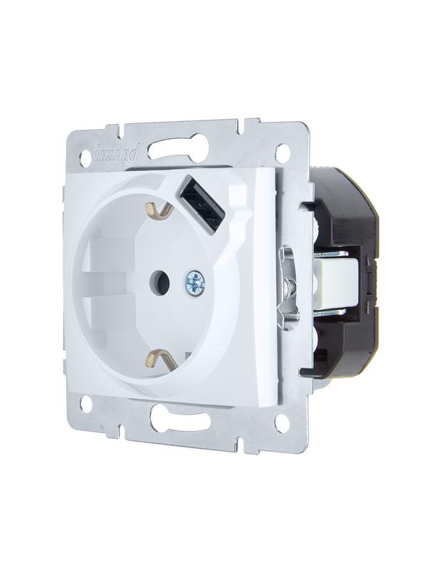7081-0288-181 | Розетка 1-м СП ASTI 16А IP20 с заземл. с заряд. устройством USB механизм бел. LEZARD