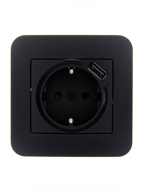7081-4242-181 | Розетка 1-м СП ASTI 16А IP20 с заземл. с заряд. устройством USB в сборе черн. бархат. LEZARD
