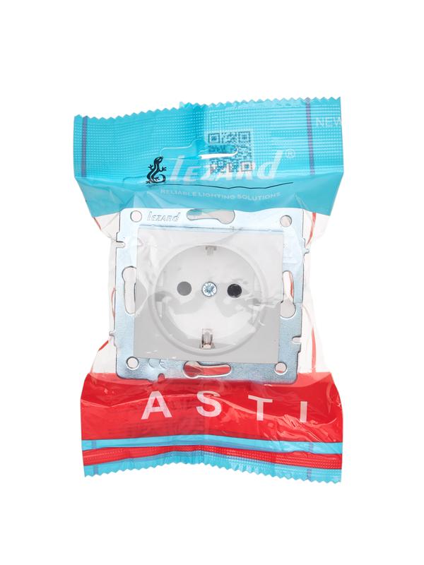 7081-0288-124B | Розетка 1-м СП ASTI 16А IP20 с заземл. защ. шторки термопласт механизм бел. LEZARD