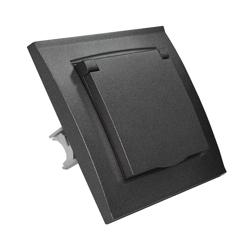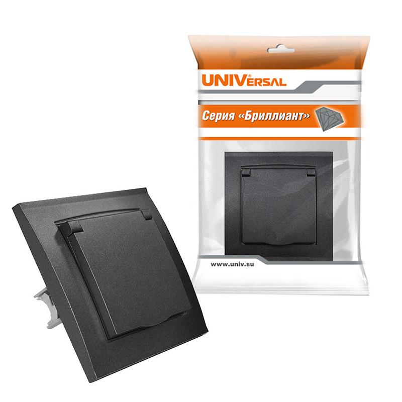 Розетка 1-м СП Бриллиант 16А IP20 с заземл. с крышкой в сборе графит Universal 7947649-Gr