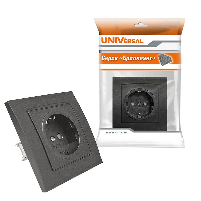 Розетка 1-м СП Бриллиант 16А IP20 с заземл. защ. шторки в сборе графит Universal 7947632-Gr