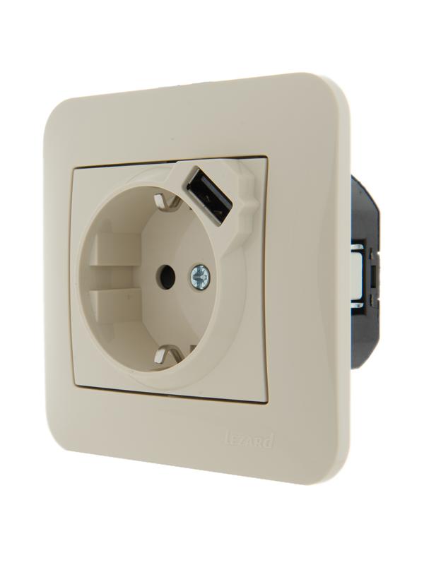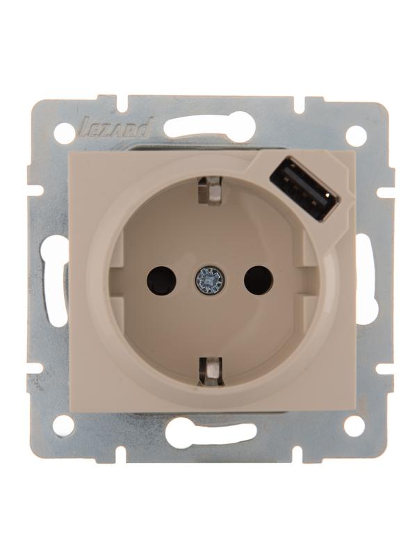 707-0388-181 | Розетка 1-м СП Karina 16А с заземл. с заряд. устройством USB механизм крем. LEZARD