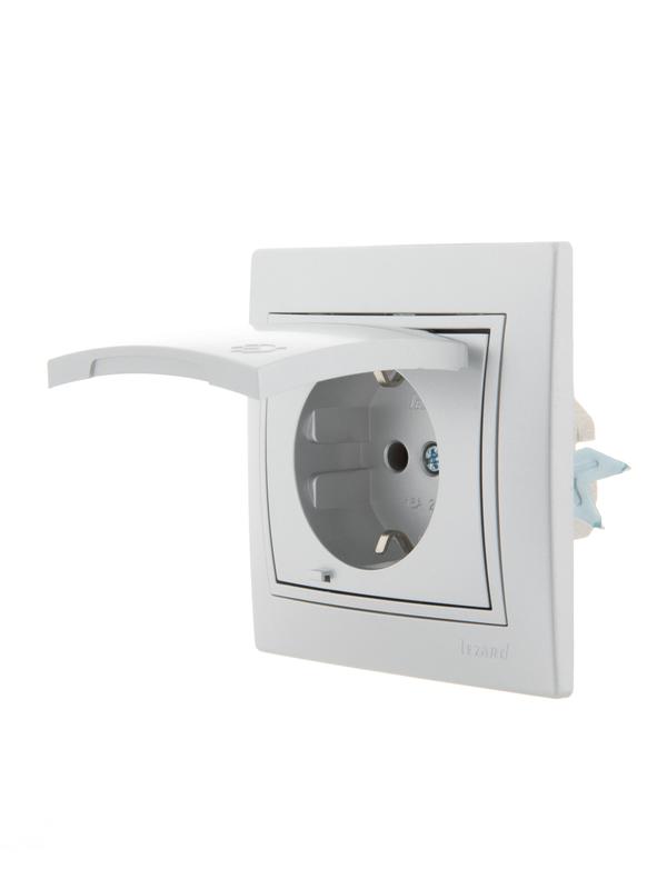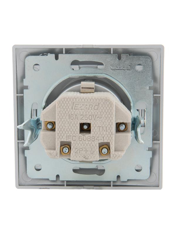 701-1010-123 | Розетка 1-м СП Mira 16А IP20 с заземл. с защ. крышкой со вставкой керамика сер. метал. LEZARD