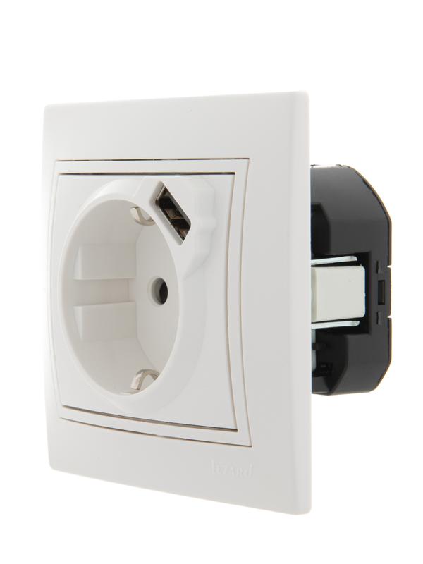 701-0202-181 | Розетка 1-м СП Mira 16А с заземл. + USB разъем бел. LEZARD