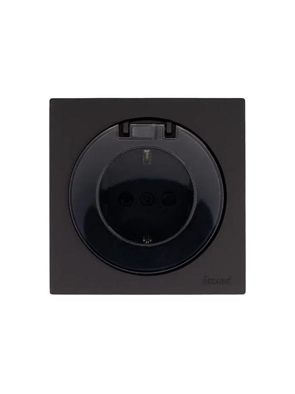 743-4288-123B | Розетка 1-м СП OSEN с заземл. с крышкой ПБТ механизм черн. бархат LEZARD