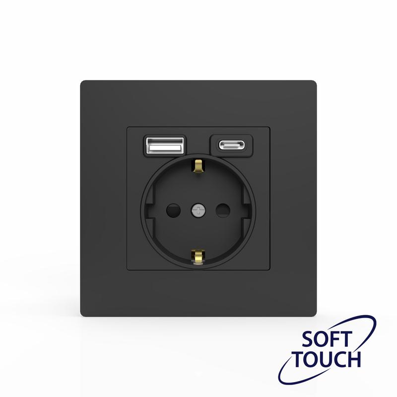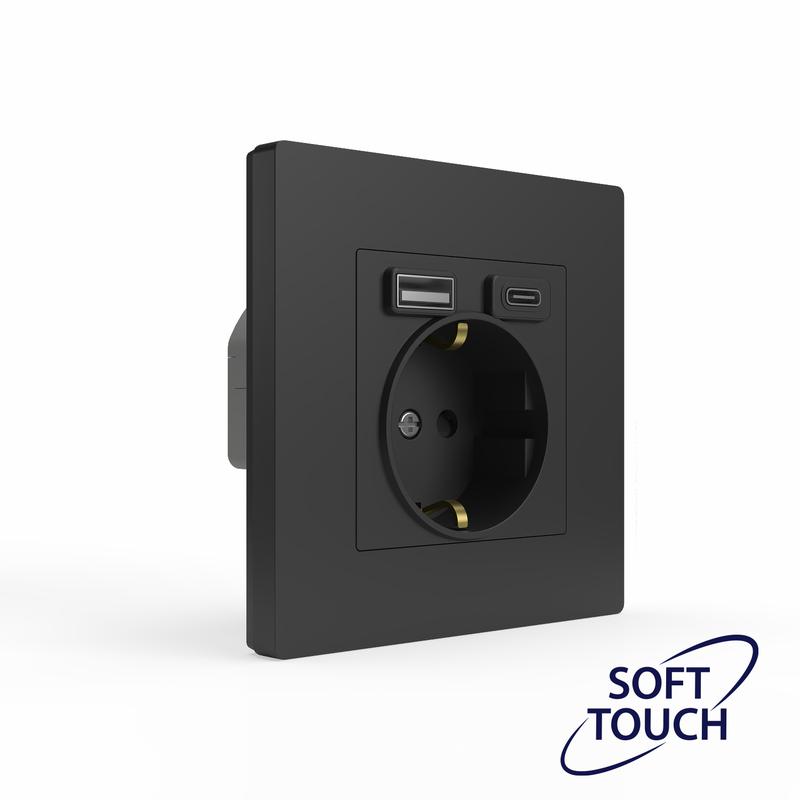 TKE-PX-R1U2AC-C14 | Розетка 1-м СП Pixel с заземл. с 2-мя заряд. устр. USB тип A+C IP20 механизм карбон TOKOV ELECTRIC