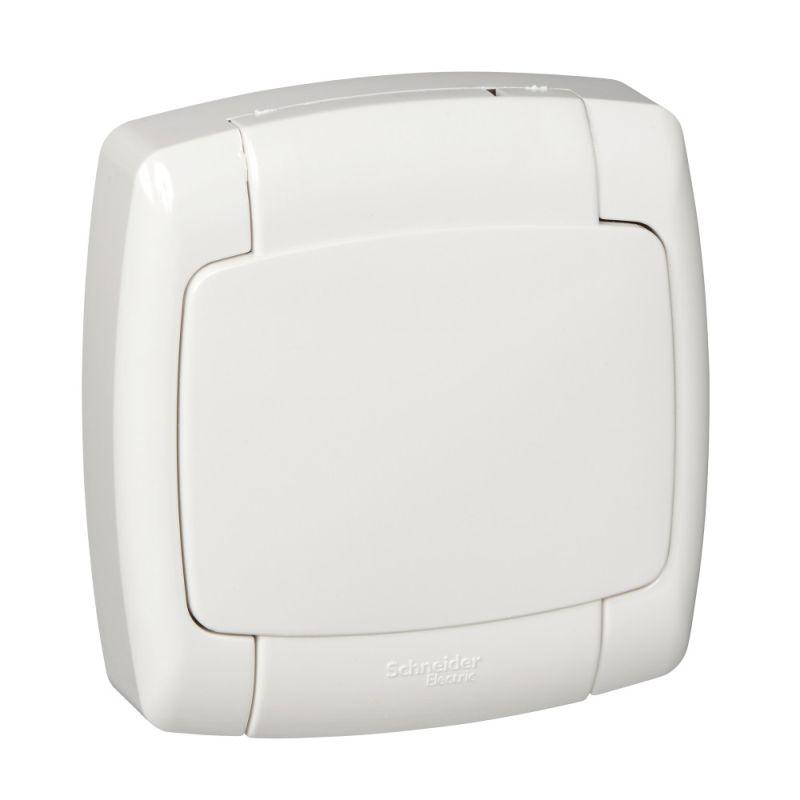 RS16-126B-BI | Розетка 1-м СП Рондо 16А IP44 250В с заземл. защ. шторки с крышкой бел. SchE