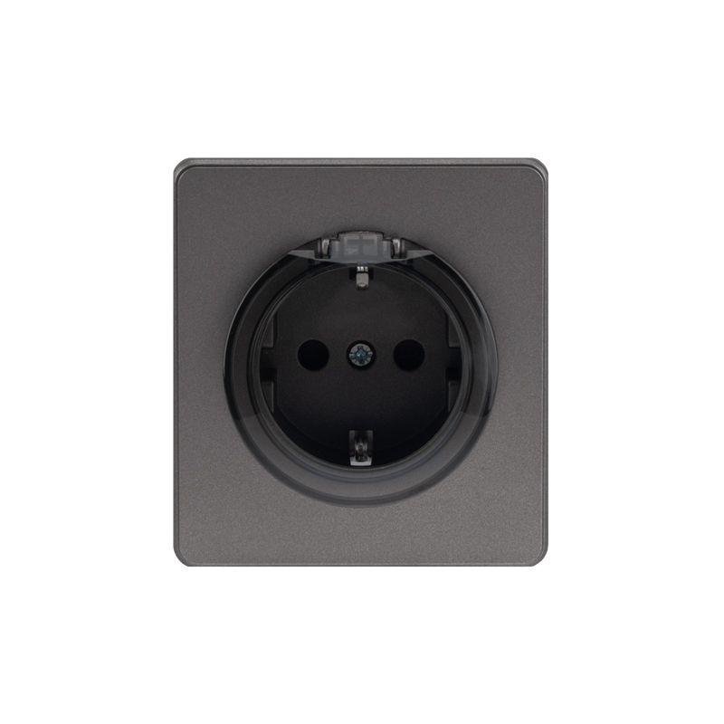 KR-78-0702-2 | Розетка 1-м СП ROUND MIELE 16А с заземл. защ. шторки и крышкой титан Kranz