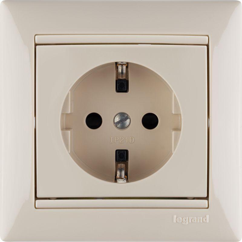 774321 | Розетка 1-м СП Valena 16А IP21 230/250В 2P+E с заземл. защ. шторки на винтах механизм сл. кость Leg
